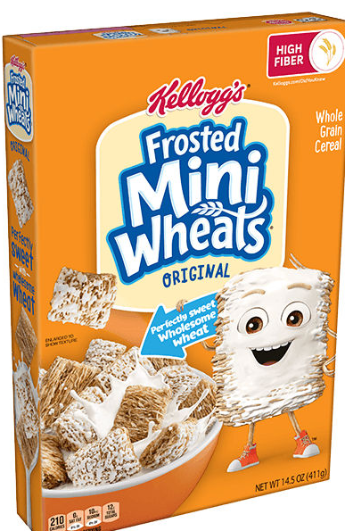Kellogg’s Frosted Mini-Wheats, a staple in breakfast cereals which claims “perfect balance of high fiber & great taste”, debuted in 1970. It is reportedly currently available in Blueberry, Chocolate, Cinnamon Roll, Cocoa, Golden Honey, Original, Original Little Bites, Pumpkin Pie, Strawberry formats. It is sometimes self-described as “a work of art”.